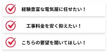 インターネット上でのやり取りとなれば、 尚のことトラブル・苦情が増えてしまいます。 現にインターネット上には情報が氾濫しており、 電気工事をご依頼されて「工事屋さんとトラブルにあった…」 という書き込みなどをよく目にします。
